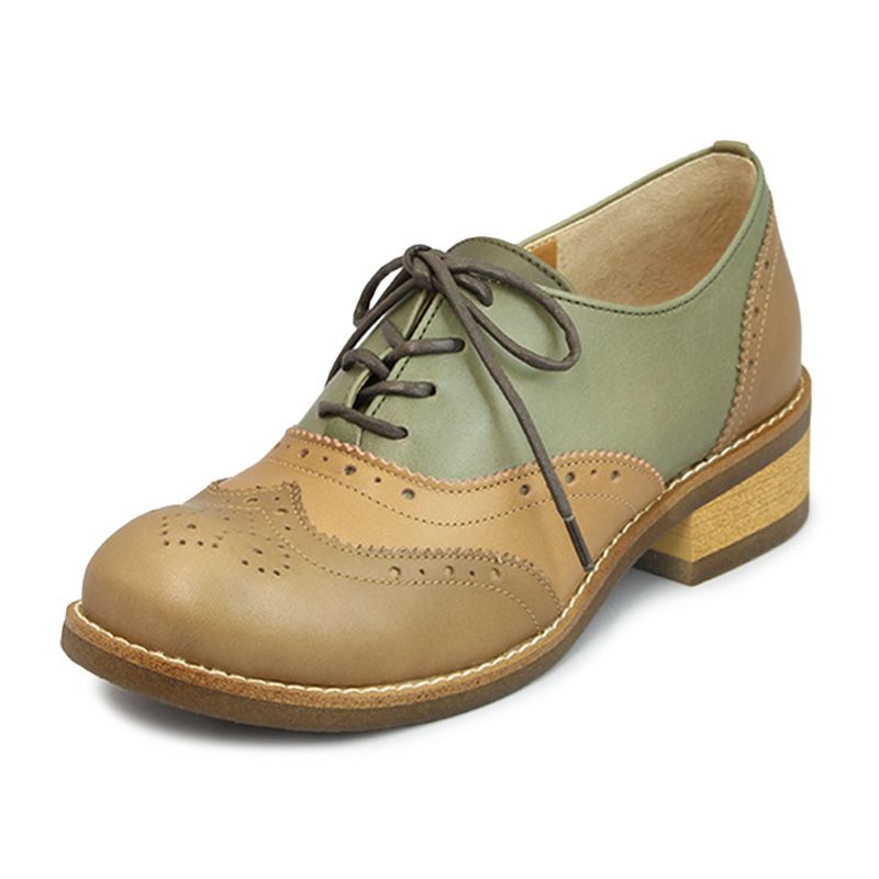 あしながおじさん 0701108 KK-C カーキ コンビ レースアップシューズ メダリオン 4cmヒール 牛革