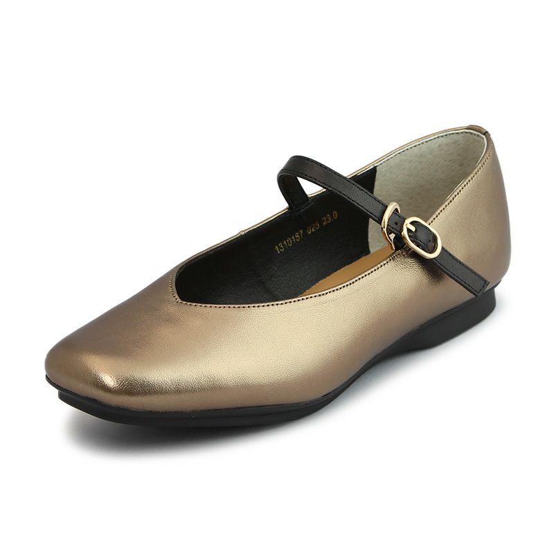 あしながおじさん 1310187 BZ-C ブロンズコンビ フラットシューズ ストラップ付 1cmヒール 羊革