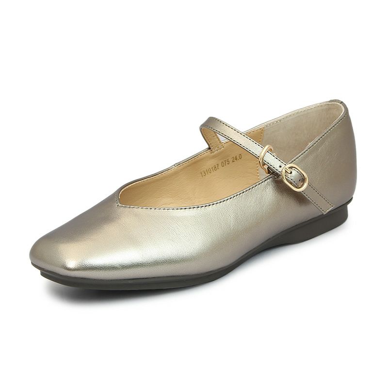あしながおじさん 1310187 GM ガンメタ フラットシューズ ストラップ付 1cmヒール