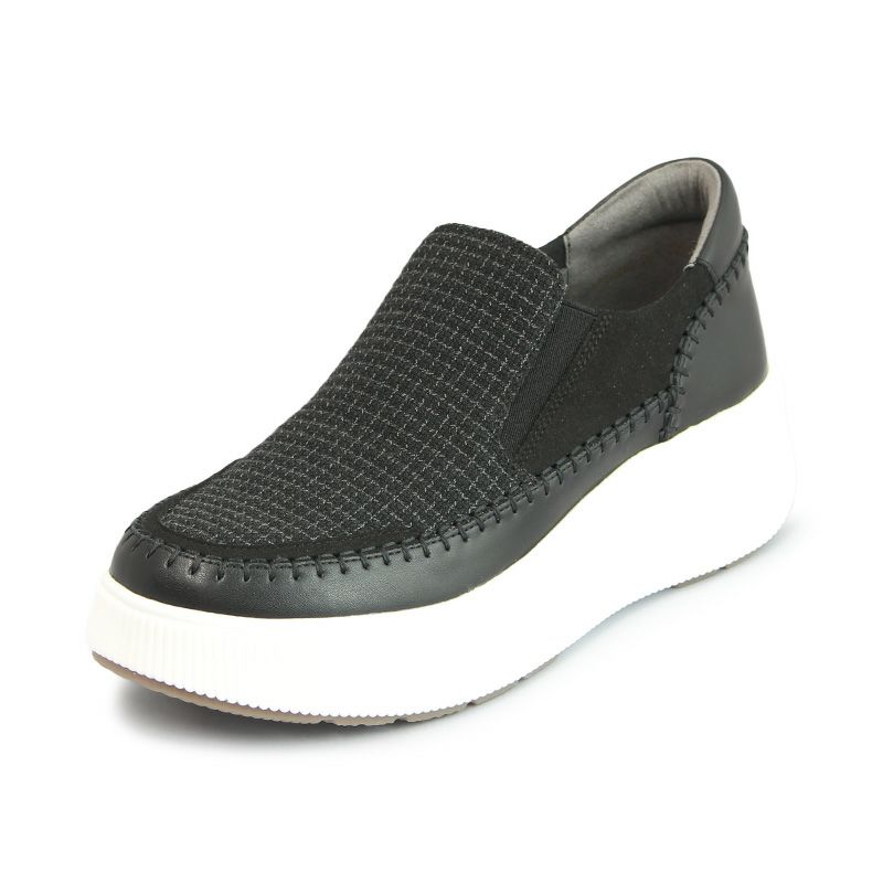 あしながおじさん 1310259 BL ブラック スニーカー 厚底 スリッポン 5.5cmヒール 合成皮革×生地