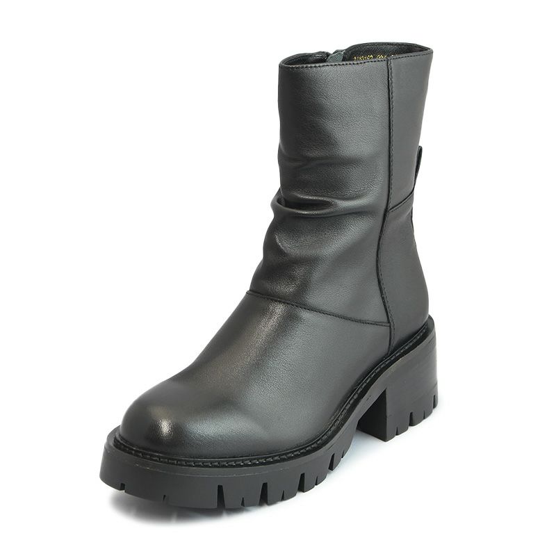 あしながおじさん 2410183 BL ブラック ブーツ ミドル丈 ファスナー付き ブロックヒール 5.5cmヒール 牛革