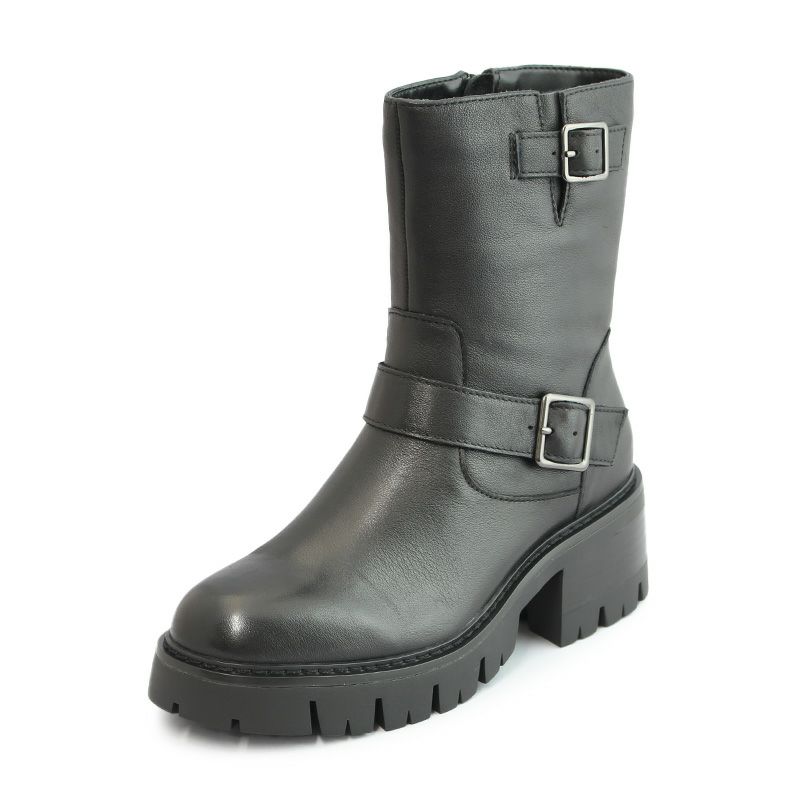 【新商品】あしながおじさん 2410199 BL ブラック ブーツ ベルト ファスナー 6cmヒール 牛革