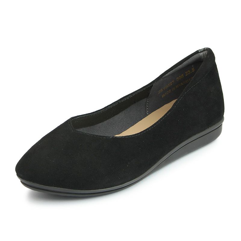 あしながおじさん 2810527 BL-S ブラックスエード フラットシューズ 1cmヒール 羊革