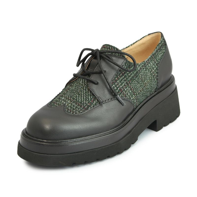 あしながおじさん 6701573 BL-C ブラックコンビ レースアップシューズ 厚底 4cmヒール 牛革×生地