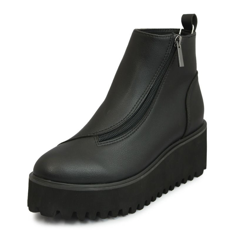 あしながおじさん 7210105 BL ブラック ショートブーツ 厚底 6cmヒール 人工皮革