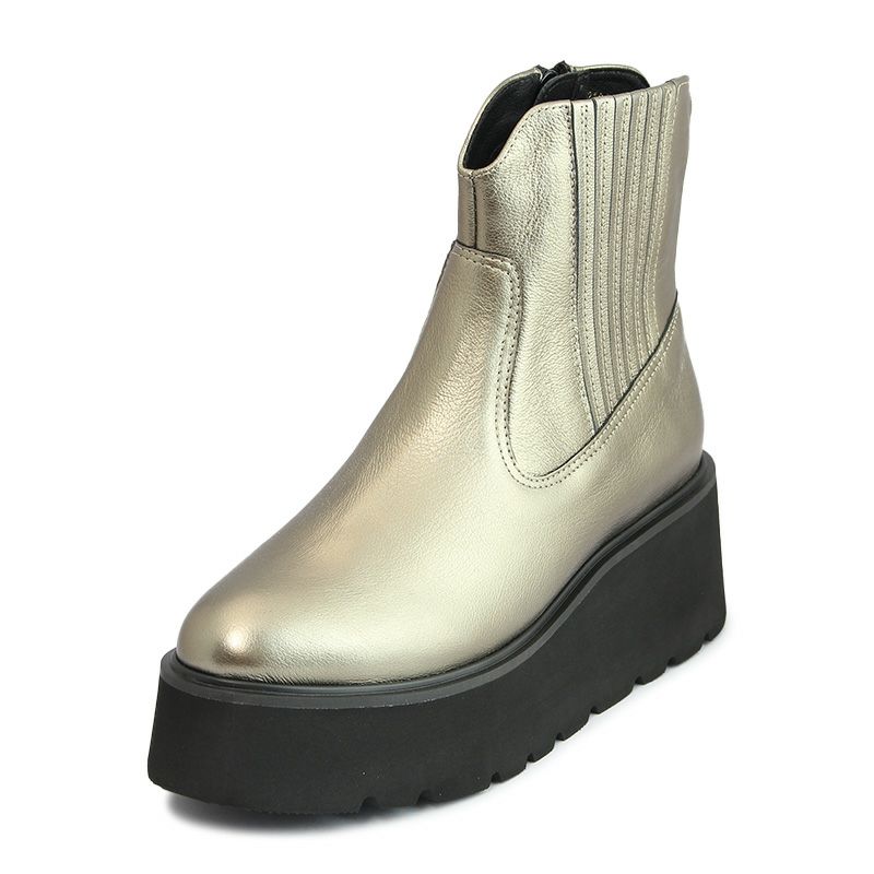 あしながおじさん 7210125 GM ガンメタ シークレットゴアブーツ ミドル丈 厚底 6cmヒール 牛革