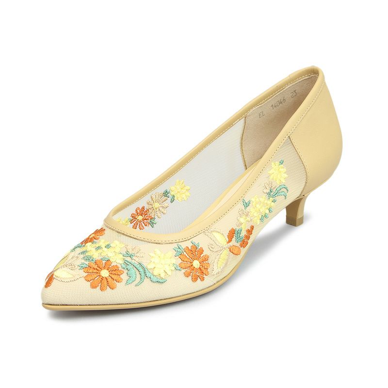 EIZO エイゾー 14046 BG ベージュ パンプス 花柄 4cmヒール チュール/キップ