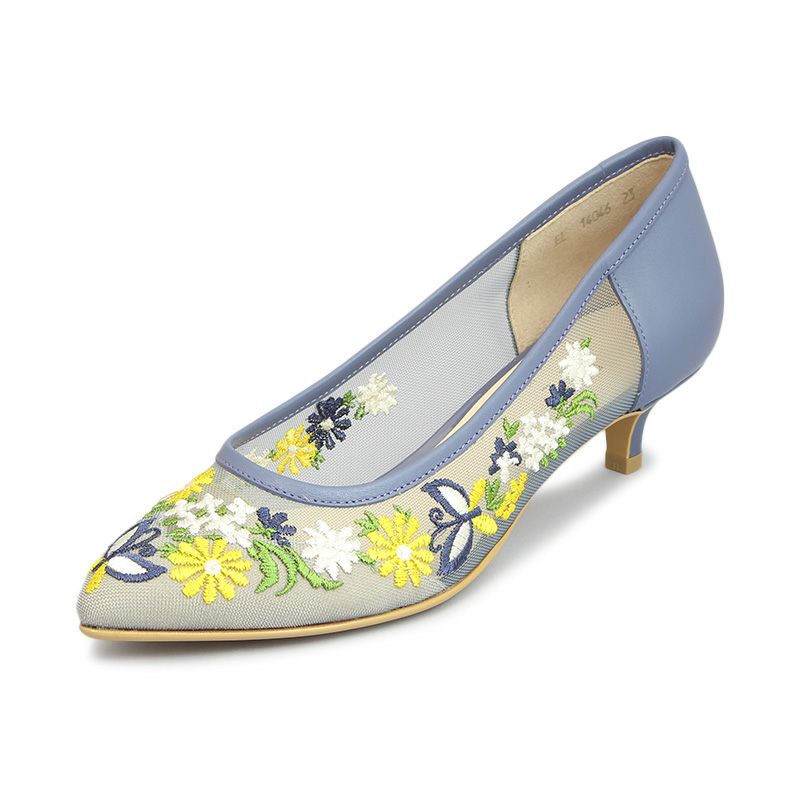EIZO エイゾー 14046 GBU グレーブルー パンプス 花柄 4cmヒール チュール/キップ