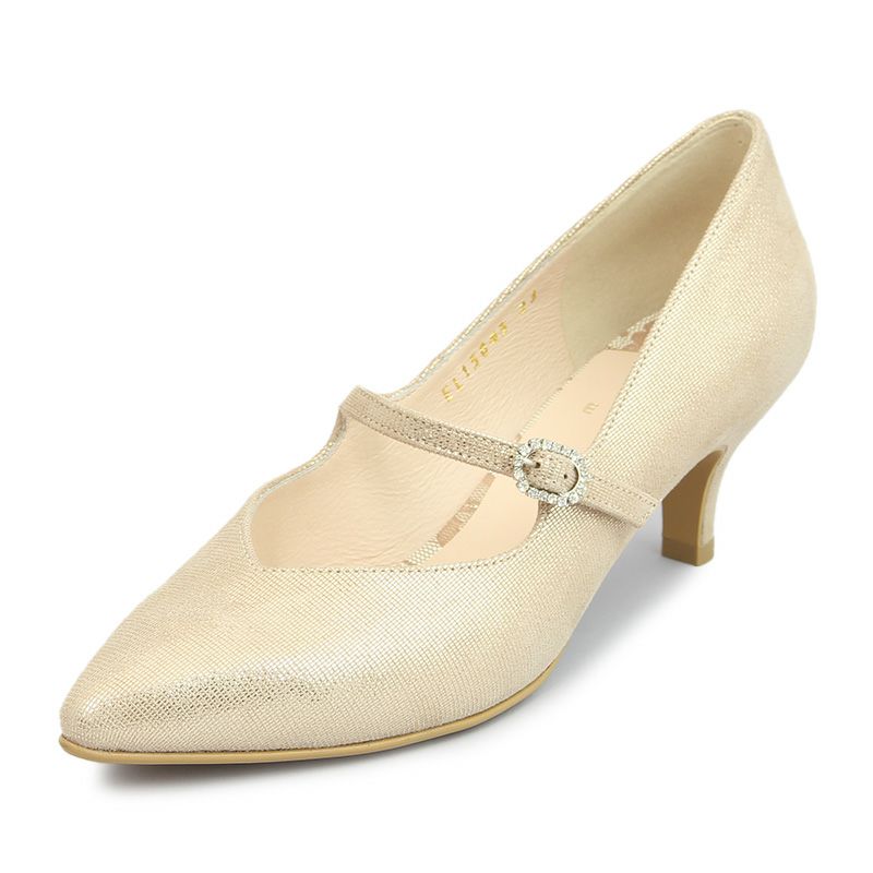 EIZO エイゾー 15045 CP シャンパン パンプス ビジュー 5.5cmヒール ゴード革