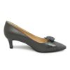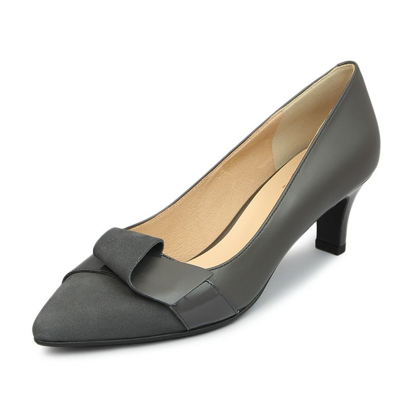 EIZO エイゾー 15235 GY-C グレー コンビ パンプス 甲リボン 5.5cmヒール ヌバック×エナメル×牛革