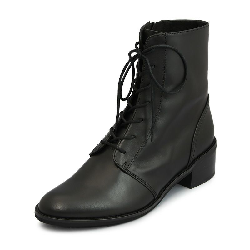 EIZO エイゾー 74366 BL ブラック レースアップブーツ ファスナー付き 4.5cmヒール キップ(牛革)