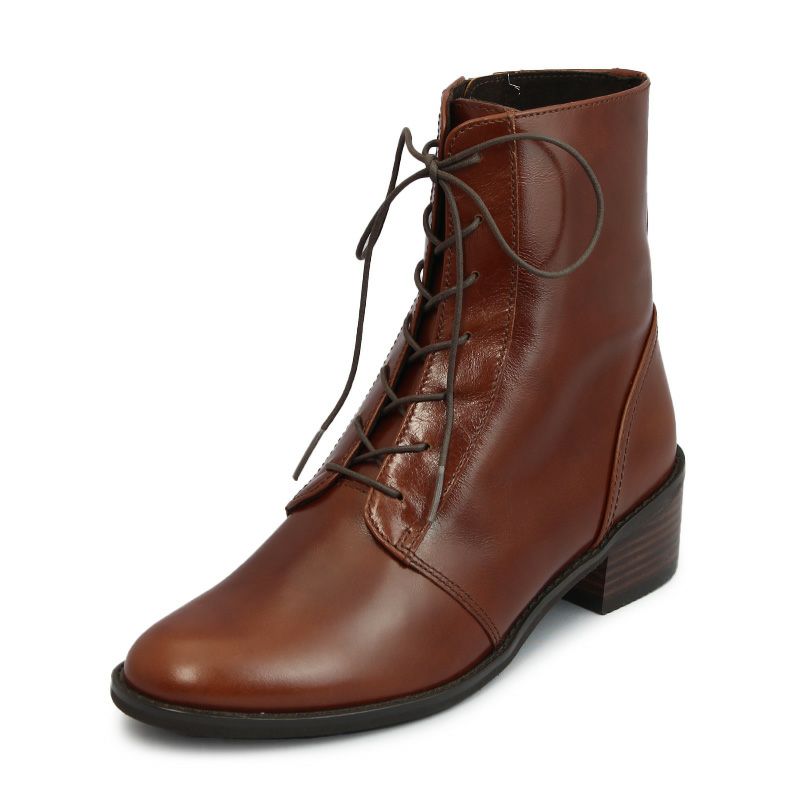 EIZO エイゾー 74366 BR ブラウン レースアップブーツ ファスナー付き 4.5cmヒール キップ(牛革)