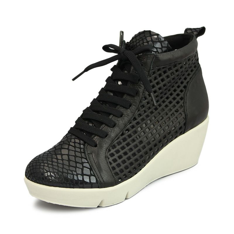 【継続品】FIZZ REEN フィズリーン 420 BL ブラック ハイカットスニーカー ウェッジソール ファスナー付き 6cmヒール 4E (20420)