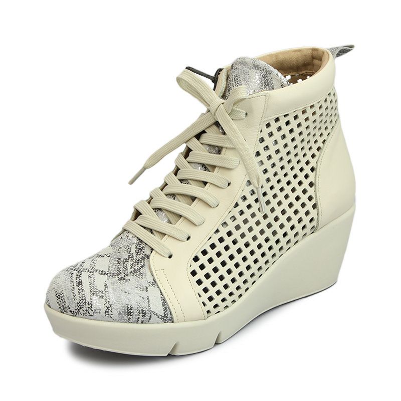 【継続品】FIZZ REEN フィズリーン 420 IV アイボリー ハイカットスニーカー ウェッジソール ファスナー付き 6cmヒール 4E (20420)