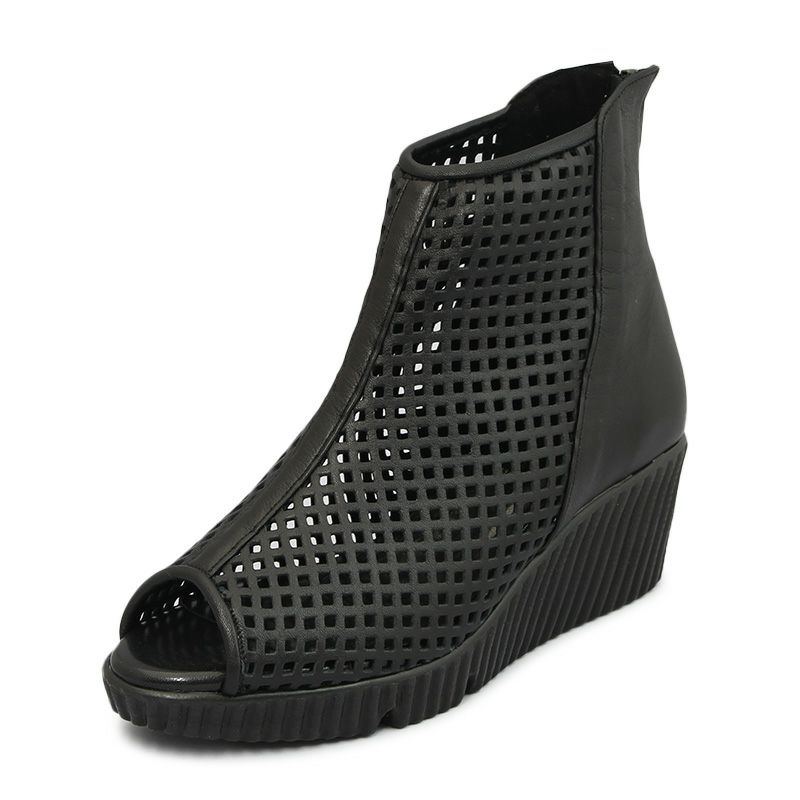 FIZZ REEN フィズリーン 642 BL ブラック サマーブーツ ウェッジソール ファスナー付き 5.5cmヒール 3E (20642)