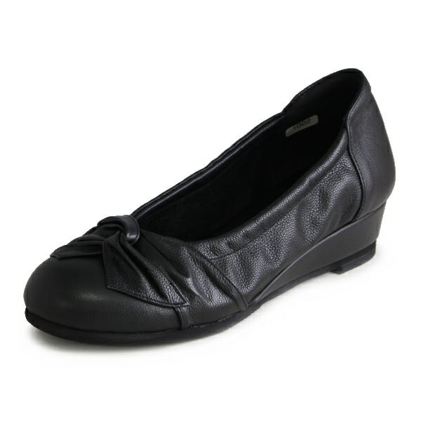 FIZZ REEN フィズリーン 1002 BL ブラック ウェッジパンプス リボンモチーフ 3.5cmヒール 4E (21002)