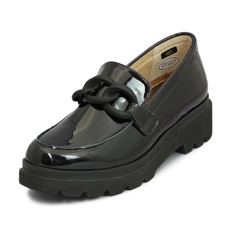 【継続品】FIZZ REEN フィズリーン 1837 BLE ブラック エナメル ローファー チェーンビット 5cmヒール 3E (21837)
