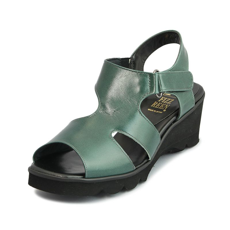 FIZZ REEN フィズリーン 6754 GR グリーン サンダル オープントゥ 6cmヒール ウェッジヒール 4E (26754)