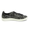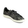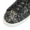 ピッグレザーにヒョウ柄とモヤのかかった独特なデザインを施した一足。