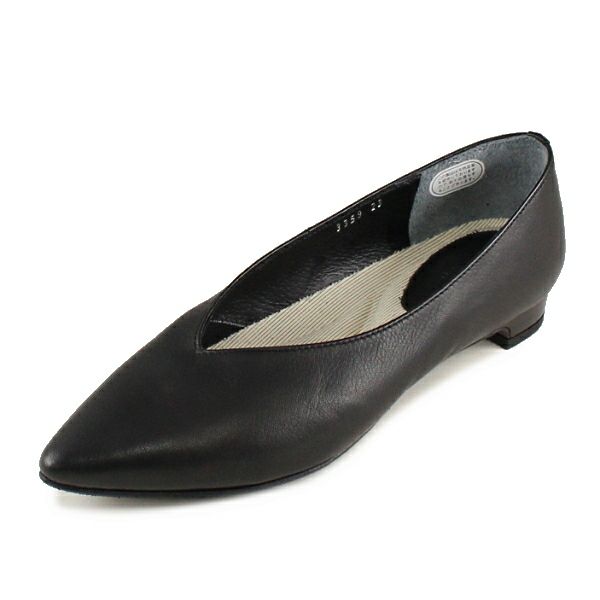 ECONO ラボキゴシ エコノ 3359 B ブラック パンプス Vカットデザイン フラットヒール 2cmヒール 本革