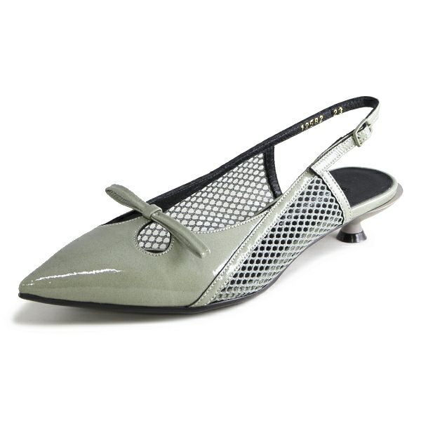 バックストラップ付で脱げにくく、斬新なデザインヒールが目を惹きます。
