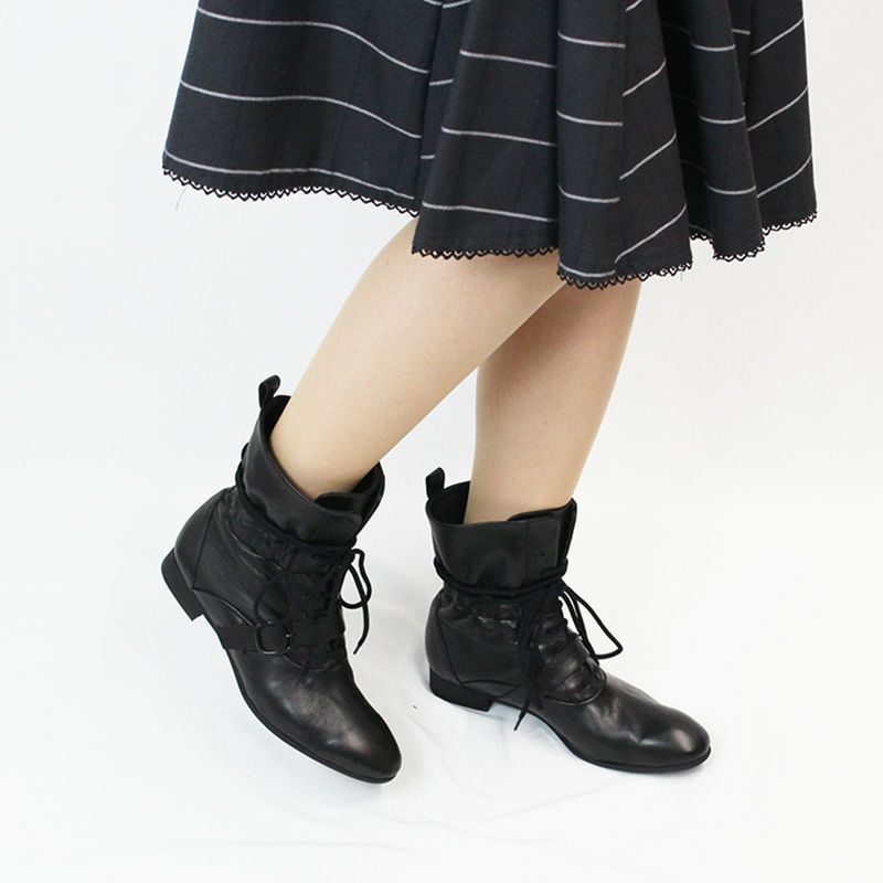works ラボキゴシワークス 12655 B ブラック レースアップブーツ 太めヒール 2.5cmヒール 撥水加工ステア(牛革)