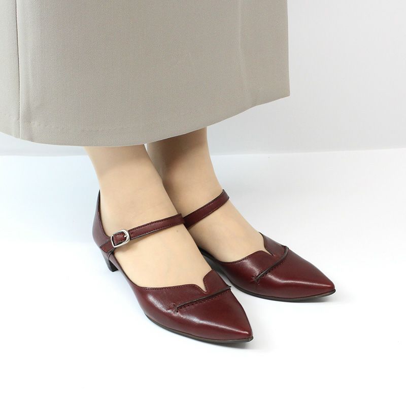 傾斜の少ない低寸ヒールで前に足が滑ることもなく、足先に負担がかかりにくくなっています。