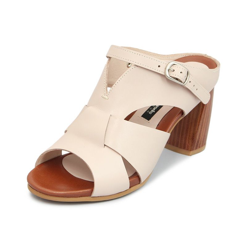 works ラボキゴシワークス 12717 IV アイボリー サンダル バックストラップ 8cmヒール キップ 合成底