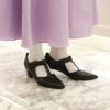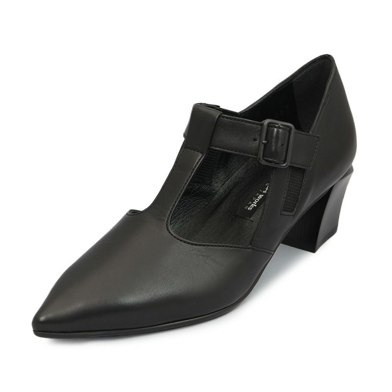 works ラボキゴシワークス 12737 B ブラック パンプス Tストラップ 5cmヒール キップ(牛革)