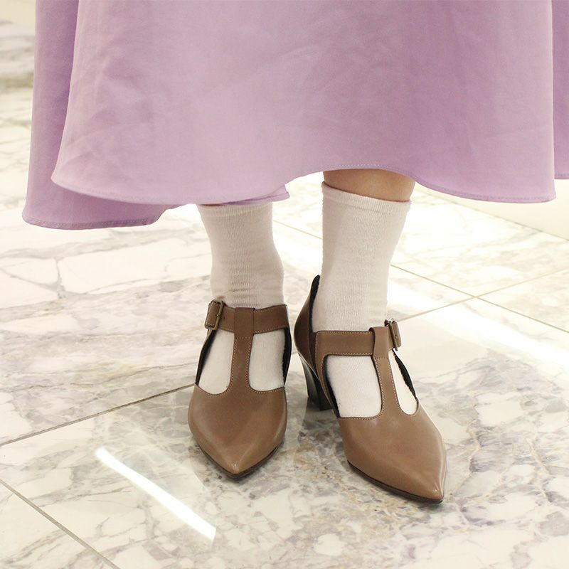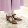 works ラボキゴシワークス 12737 DBG ダークベージュ パンプス Tストラップ 5cmヒール キップ(牛革)