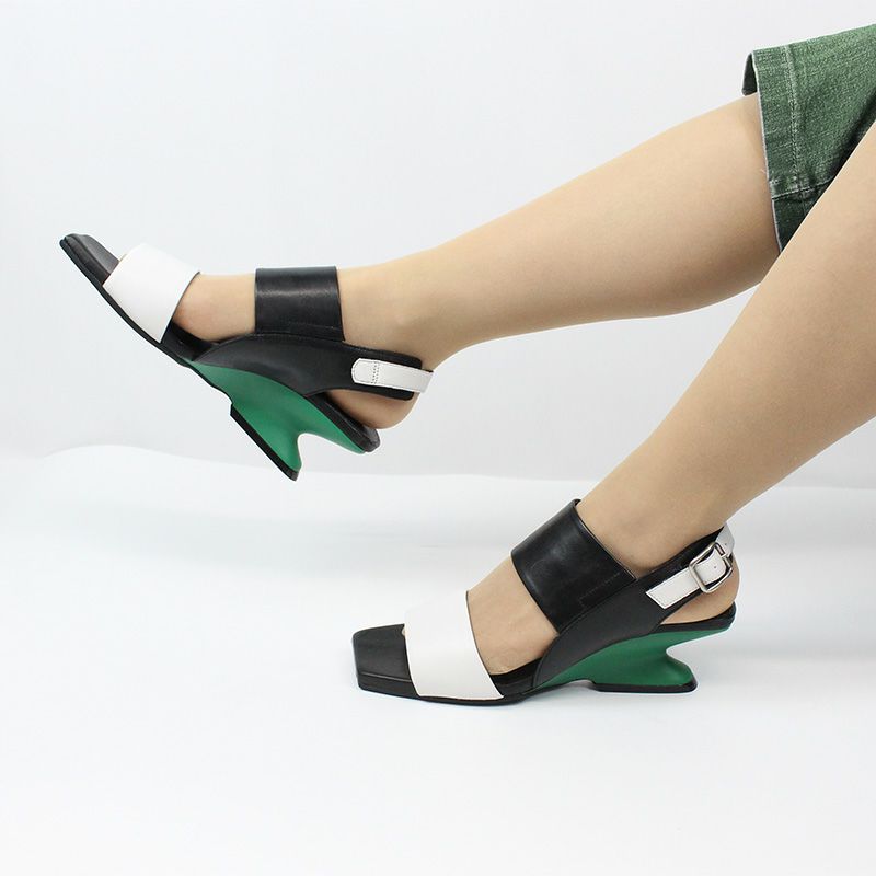 works ラボキゴシワークス 12775 B ブラック サンダル バックストラップ 5.5cmヒール ステア 合成底