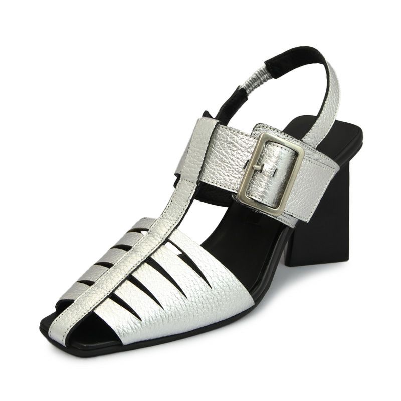 works ラボキゴシワークス 12776 SV シルバー サンダル バックストラップ 7cmヒール 箔ステア 合成底