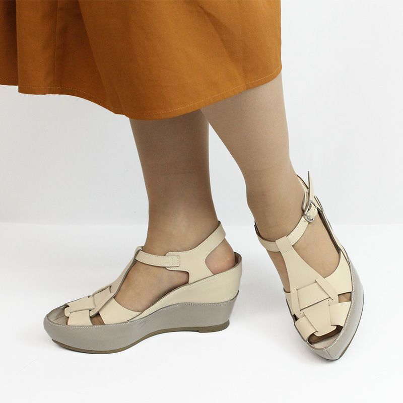 【継続品】works ラボキゴシワークス 12781 LBG ライトベージュ ストームサンダル Tストラップ 7.5cmヒール キップ×ステアエナメル 合成底