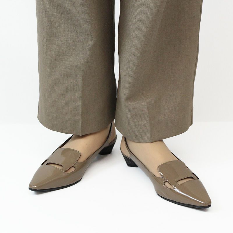 works ラボキゴシワークス 12810 ORK オーク サンダル バックベルト ポインテッドトゥ 3.5cmヒール ゴードエナメル