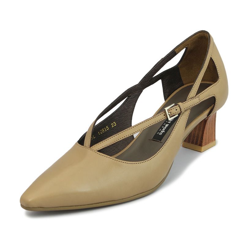 works ラボキゴシワークス 12815 BEG ベージュ パンプス ポインテッドトゥ ストラップ付 5cmヒール カーフ