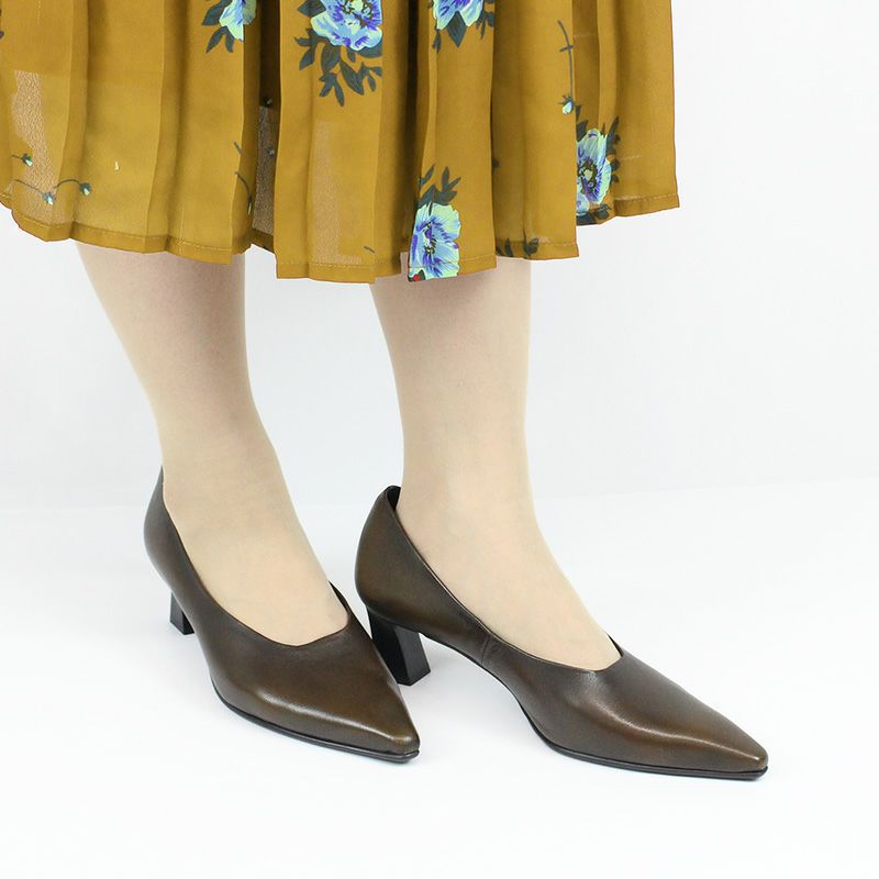 シャープなトゥとスクエアのカットがクラシカルな印象。