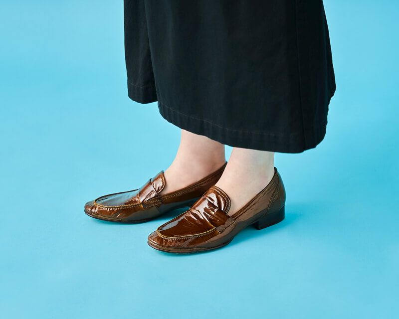 SAYA ラボキゴシ サヤ 50984 KHA カーキ ローファー フラットヒール 手染めゴードエナメル(山羊革)2cmヒール