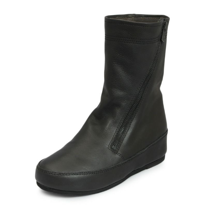斜めに入ったファスナーがオシャレなショートブーツです。