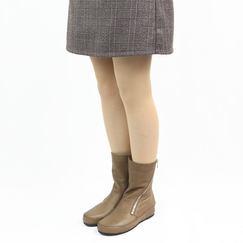 斜めに入ったファスナーがオシャレなショートブーツです。