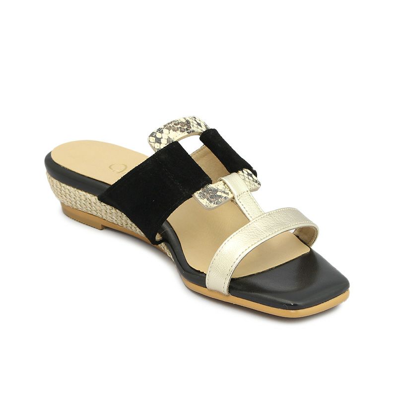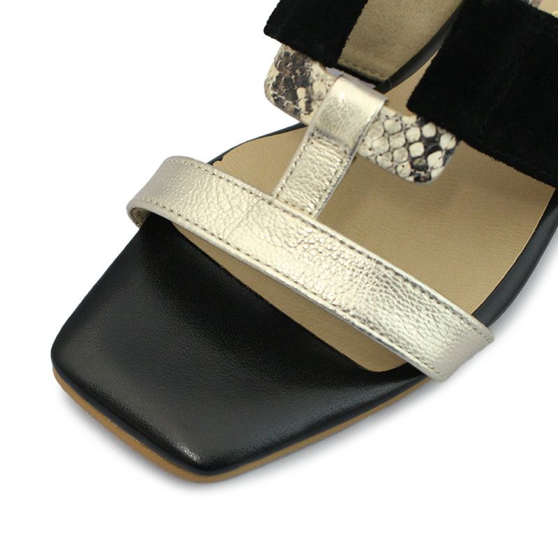 Vue エイゾー ビュー 51461 BLW-BL ブラックホワイトブラック トングサンダル 1.5cmヒール 型押し牛革×山羊革箔加工