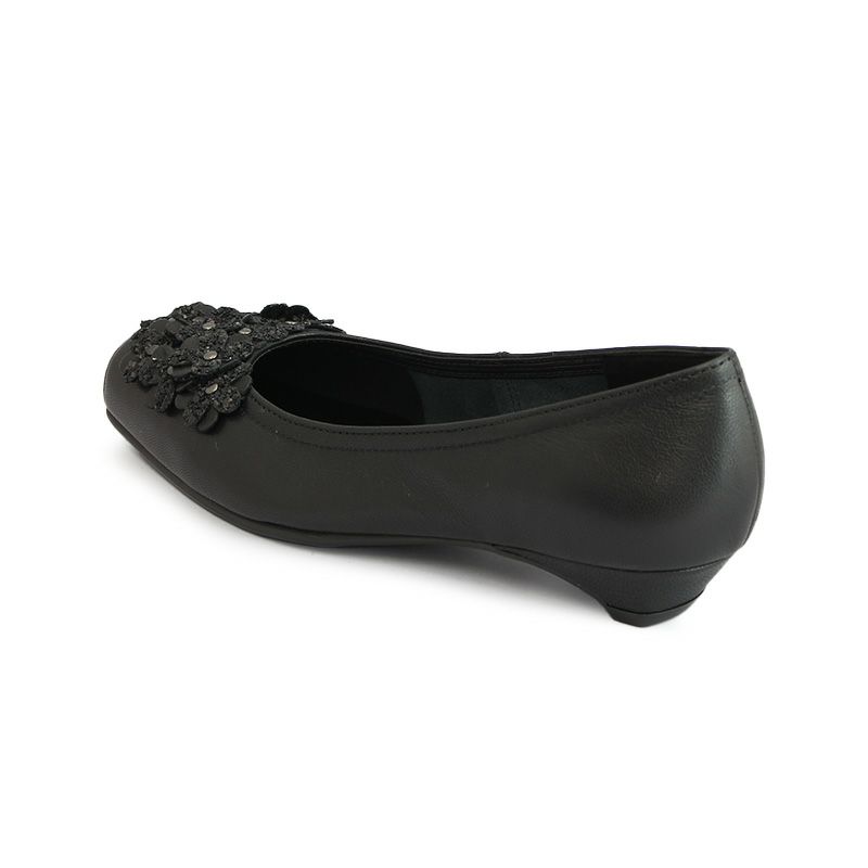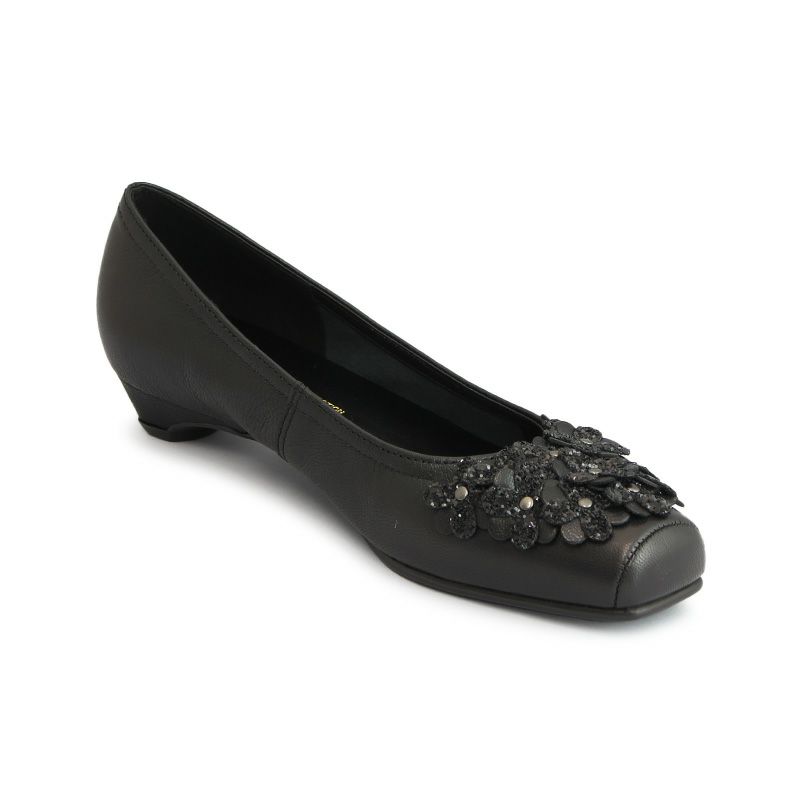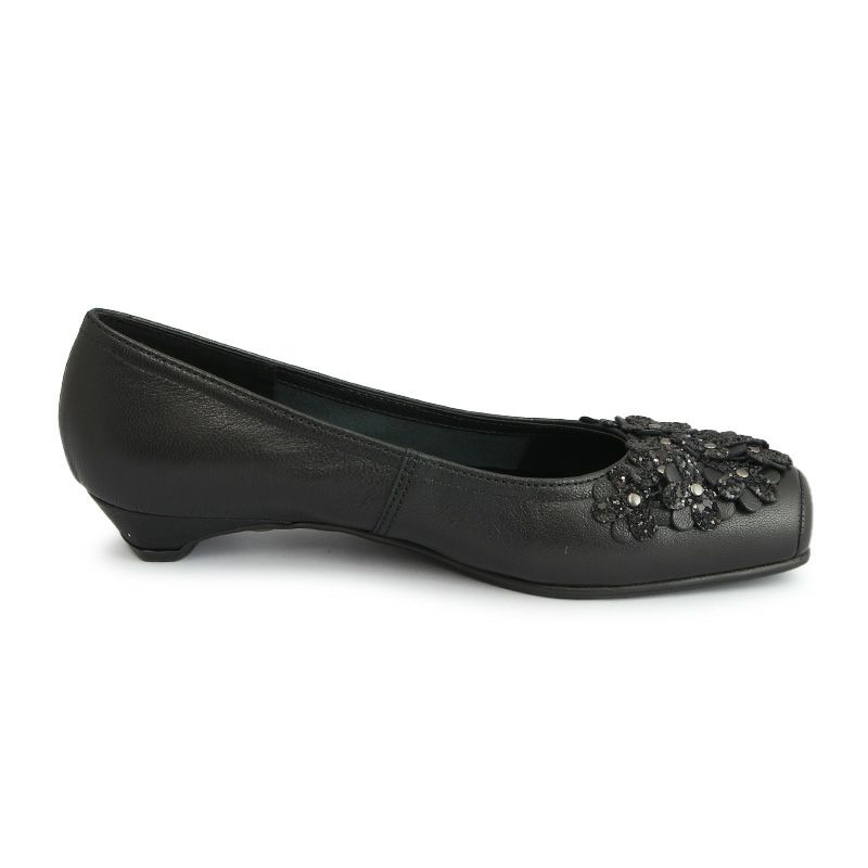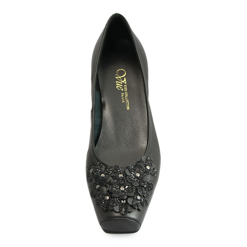 【継続品】Vue エイゾー ビュー 12569 BL ブラック パンプス フラワーモチーフ 2.5cmヒール