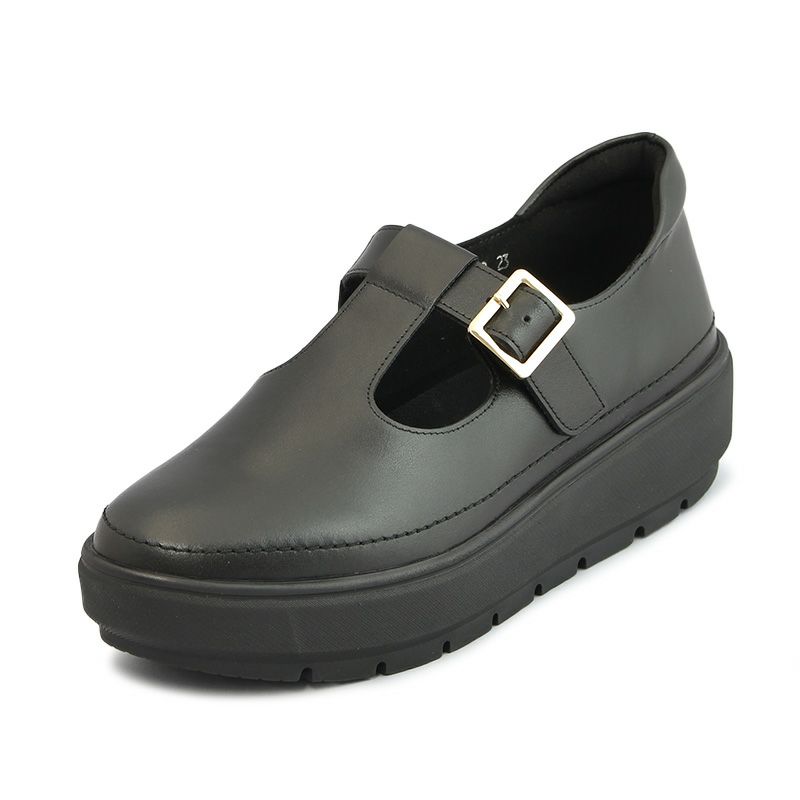 【継続品】Vue エイゾー ビュー 81572 BL ブラック Tストラップシューズ 厚底 4.5cmヒール 牛革