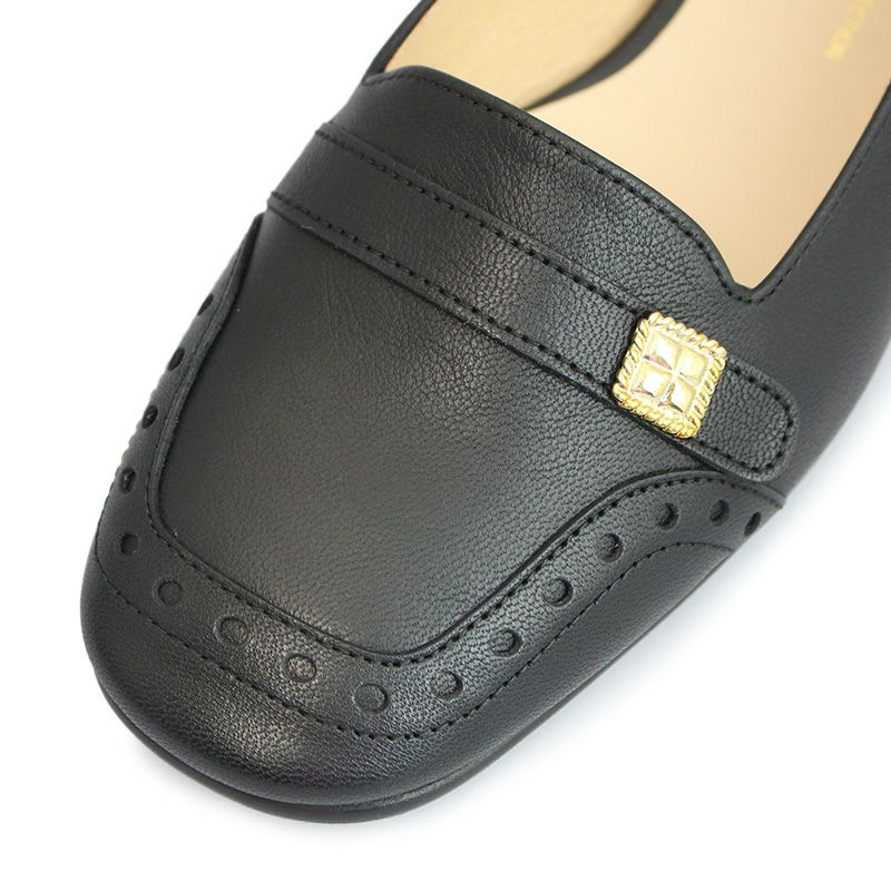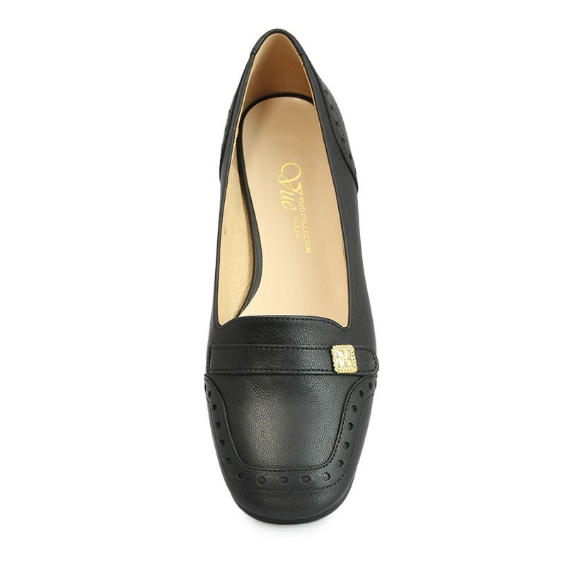 【継続品】Vue エイゾー ビュー 21567 BL ブラック フラットシューズ メダリオン 1.5cmヒール