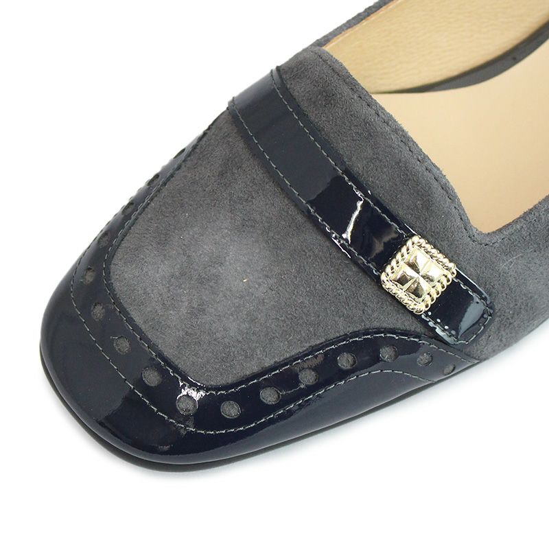 Vue エイゾー ビュー 21567 GYS-C グレースエードコンビ フラットシューズ メダリオン 1.5cmヒール