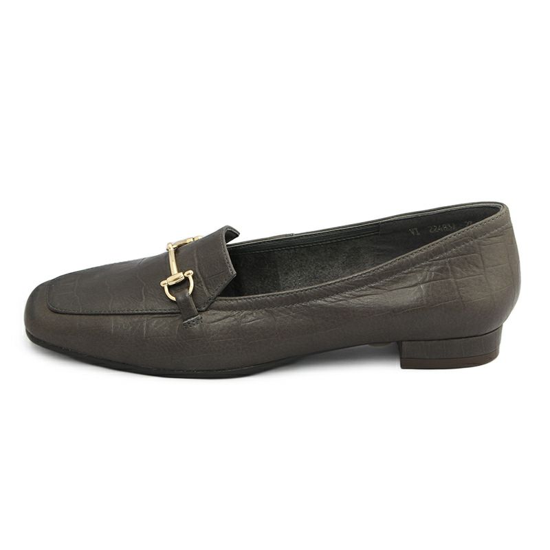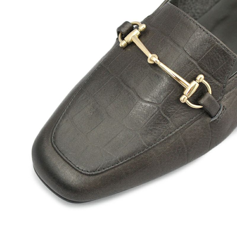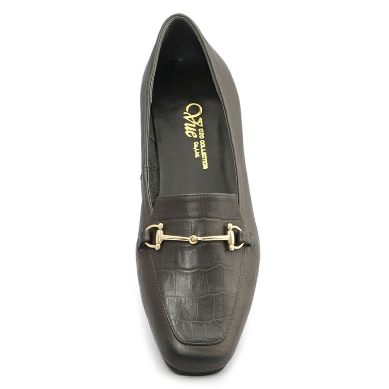 Vue エイゾー ビュー 22483A DGY-K ダークグレー ビットローファー 1.5cmヒール ステアヌバック-クロコ型押し