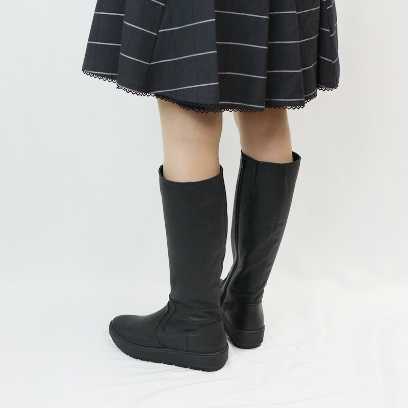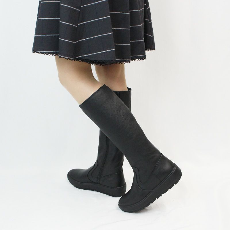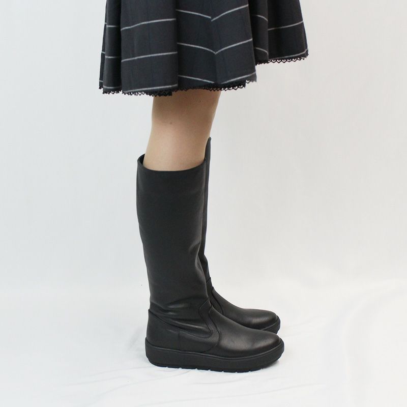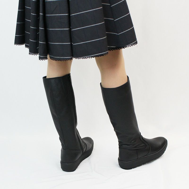 Vue エイゾー ビュー 61505 BL ブラック ロングブーツ 厚底 ファスナー 1cmヒール キップ(牛革)