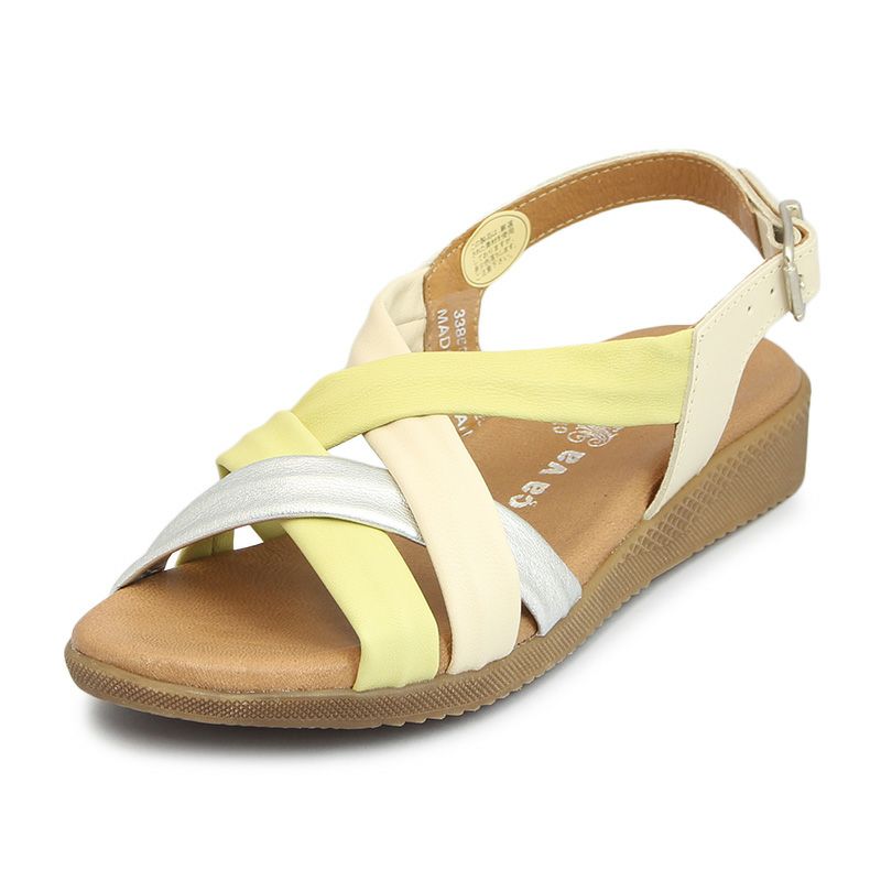 cava cava サヴァサヴァ 3385023 WH-C ホワイトコンビ サンダル 2.5cmヒール 山羊革×牛革