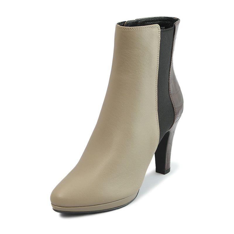 【新商品】EIZO エイゾー 79113 GYUC グレージュコンビ ショートブーツ サイドゴア ファスナー ハイヒール 9cmヒール 筒丈12cm