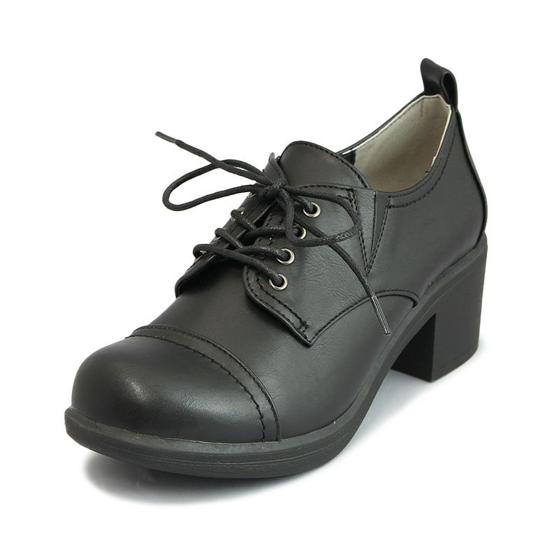 【新商品】by バイ あしながおじさん 8980437 BL ブラック レースアップシューズ ラウンドトゥ 6cmヒール 合成皮革
