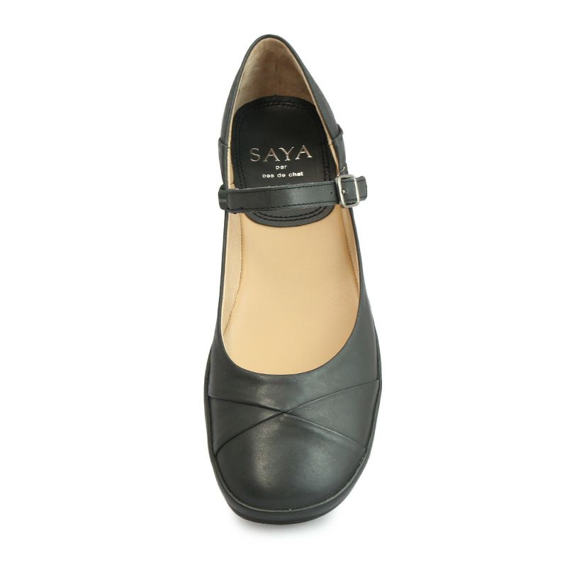 【継続品】SAYA ラボキゴシ サヤ 51233 B ブラック ストラップシューズ スクエアトゥ 3cmヒール ステア 合成底